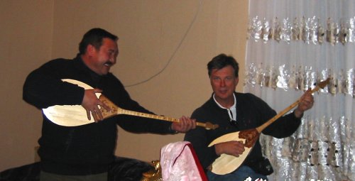 a 6 string guitar.  Our host ceremoniously presented Dombras to me and my Japanese Client, Masashi Nishimura.