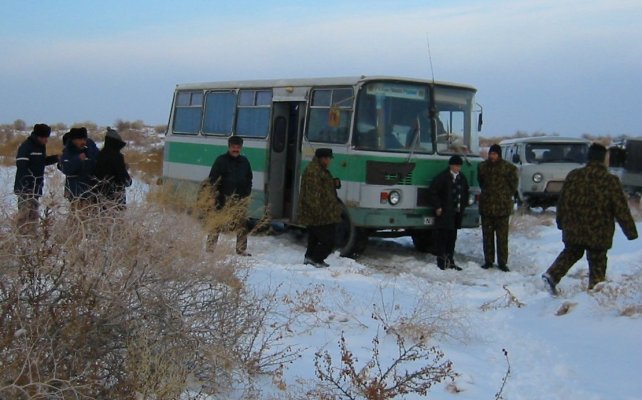belt yourself to.  The flight took us to Kyzylorda, a town approximately 600 miles to the West, a former capital of Kazakhstan back in the middle 1920s.  From there we boarded small cars and drove another 100 miles